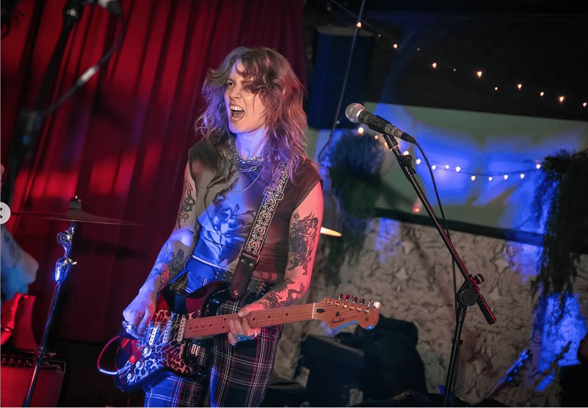 I've been playing for over 20 years and I'm just starting to hit my stride. I'm the lead guitarist and co-vocalist of DOWNGIRL, an all-femme punk band that's played around Australia — from crowded pubs to huge stages, promoting safe, rock-fuelled environments for women and queer folk.
